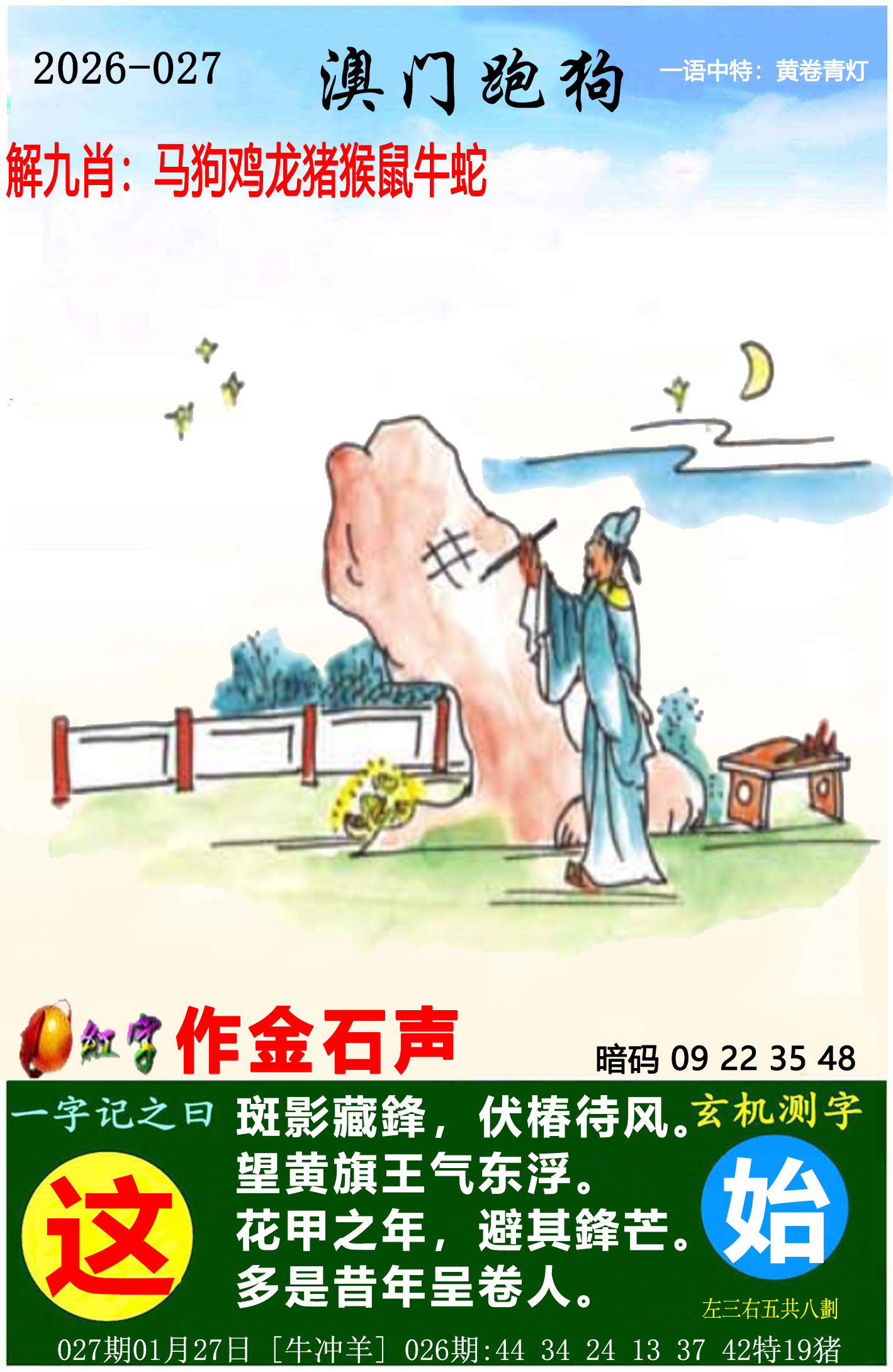 027期精准跑狗一字記之曰: